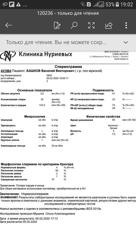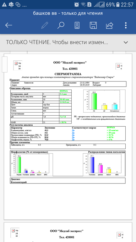 Анализы и процедуры. Помощь в расшифровке результатовДобрый вечер,девушки!гляньте пожалуйста сг.смущает морфология 78%.андролог сказал,что могут в Минздраве развернуть из-за подозрительно высокого показателя.сказала,первый раз видит такое.максимум за ее практику было 16%.советует пересдать,т.к думает это ошибка лабы.посоветуйте,пожалуйста что делать?