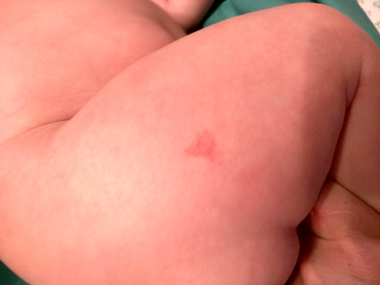 Ставили ее в правое бедро, сейчас на этом месте красное пятно, оно всё ещё не прошло,скоро два месяца.