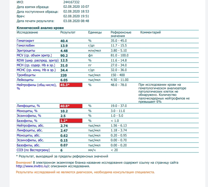 Анализы и процедуры. Помощь в расшифровке результатовДевочки, подскажите, сдала общий анализ крови, а там повышены лимфоциты и базофилы, и ещё нейтрофилы ниже нормы, в мне в протокол вступать в августе, возьмут ли?