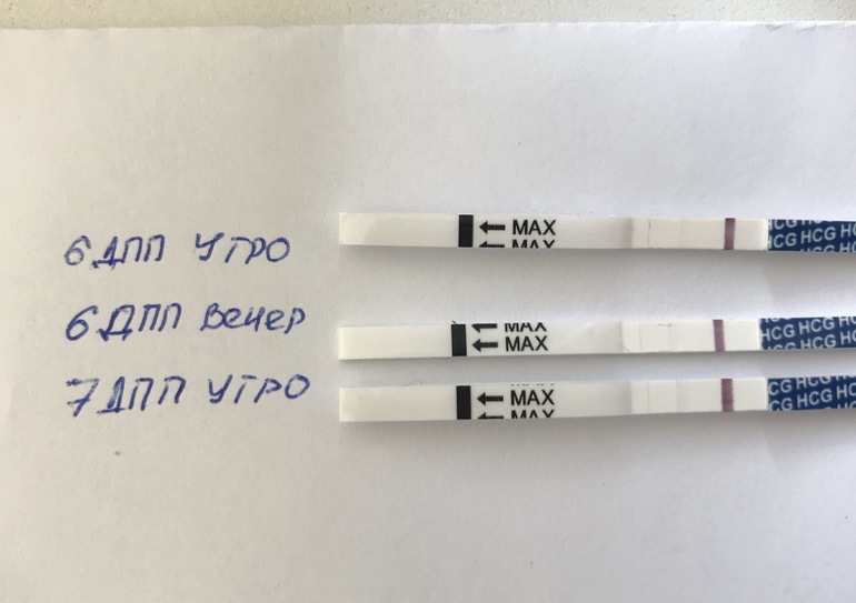 6 дпп, просыпаюсь раньше будильника на час, бреду в туалет и сонным мозгом понимаю что утренняя моча это сейчас, делаю тест, жду 1-2 минуты, там пусто и даже не расстроившись иду досыпать. Прежде чем лечь опять думаю что пора прекращать ЗГТ, но все же пью и втираю все что надо. В этот день решила забить на утренний спорт, сплю до обеда, часов в 11 иду в туалет и вижу, что лежит тест в пакетике, не выбросила его, не хотела утром мужа будить. Иду с ним к мусорке и по дороге решаю ещё раз глянуть и не верю глазам там призрак при чем прям приличный уже 😱😱😱 как так-то, утром не было ведь, решаю что это реагент! Вечером делаю ещё один тест и опять минут через 4-5 вижу вторую полосочку!!!! Боюсь радоваться, только смирилась с пролетом. Утром нужно идти сдавать коуголаграмму и за одно хотела ХГЧ раз уж тыкать иголками все равно.