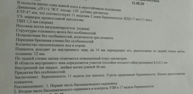 Всё о нашей беременностиПриветик девочки! Хочу немного добавить позитив в этот день. Дождались наконец то УЗИ, сказать что я счастлива ничего не сказать, видела кроху во всей красе, в движении правда не секунды покоя, не смогли даже снимок сделать 😄, с плодом все хорошо для меня это было важнее всего. Завтра сдам анализы. Ниже приложу описание УЗИ. Девочки желаю всем ощутить это счастье, только бороться! Я наконец то дождалась этого момента и всем желаю этого, наш труд достоен ! Да но есть конечно и не приятное, это тонус и маленькая отслойка, мазни не было так что вхожу в режим покоя и больше постельного режима. Врач сказала мне не переживать, просто себя очень беречь, все будет хорошо, я ей верю. Так была настроена что уже уберем прогик масляный, но походу попка еще как месяц точно будет страдать 😄По самочувствию, с животом плоховато, тянет, сейчас отсеиваю все продукты что раздражают и раздувают живот, конечно больше всего это от прогика, но как то надо облегчить, ставлю свечи Виберкол и пью капли Нукс вомика гомакорд, с ними чуть легче. Живот уже округлился ( и ещё вздутие делает больше) так немного стало видно, я ж худышка, скоро все раскроют мою тайну 😅. Уже меньше мутит и прошло отвращение на некоторые продукты, так ем все по чучуть. Кто в ожидании маленького чуда, а как у вас дела?