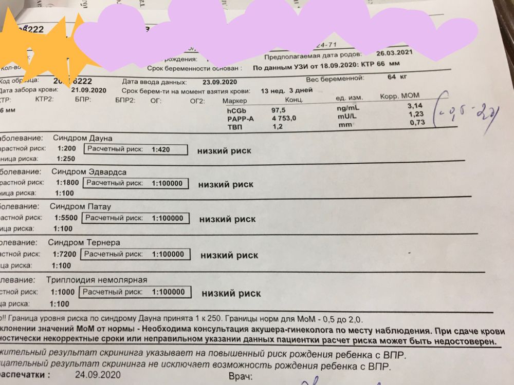 беременность после эко. Сейчас 37, было крио (эмбрион получен и заморожен когда было 34 года). в первую Б, риски по скринингу Крови были низкие, там был свежий протокол.