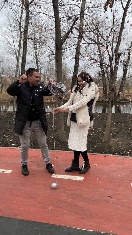 cyma, они лопают шарик и цвет конфети этих обозначает пол ребёнка о котором они судя по всему узнали только 😁