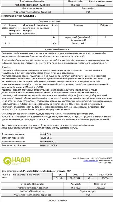 Viva, ещё не переносила. Я перешла в мид на российскую к Котлику. В ближайшее время планирую перевозить туда и э, и наверное и переносить. Но мне ещё долго- хочу гистеру перед переносом. В любом случае, в ближайшие недели попаду к нему на консультацию, покажу это заключение. Увидим, или что-то скажет, или направит к генетику. В любом случае, напишу здесь