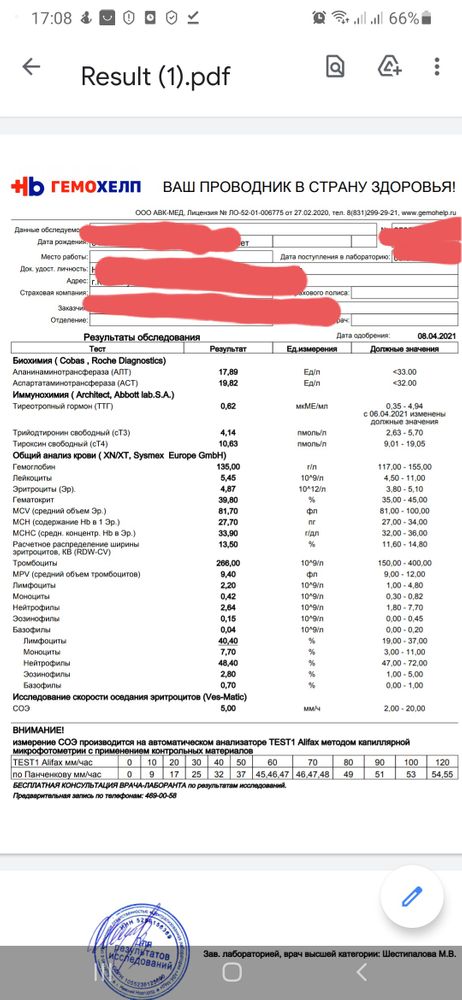В декабре 2020г. перед 4ым протоколом после сдачи анализов меня ошарашили результаты по которым мне поставили диагноз Тиреотоксикоз лёгкой степени. В протокол естественно не пустили отправили лечиться. Симптомы: мандраж тела, тремор рук, тошнота и сердцебиение. Анализы: ТТГ ниже нормы, Т3 и Т4 выше нормы. После сдачи ат к ТТГ ещё и рецепторы повышены. Лечение: тиреостатиками с постепенным снижением до поддерживающей дозы длинною в год. У меня был Тирозол 30 в день. По февраль 2021г.. Тут на сайте мне подсказали перейти на Пропицил 100(2 таб. в день). Перешла. Несмотря на то, что он дорогущий и на него периодически дефицит я его покупала и покупаю. Он реально помогает. Сегодня сдала анализы по плану каждый месяц в начале сдаю анализы: ТТГ, свТ3 и свТ4 и ОАК с лейконцтарной формулой и АСТ и АЛТ(печенка). Всё в норме!!!