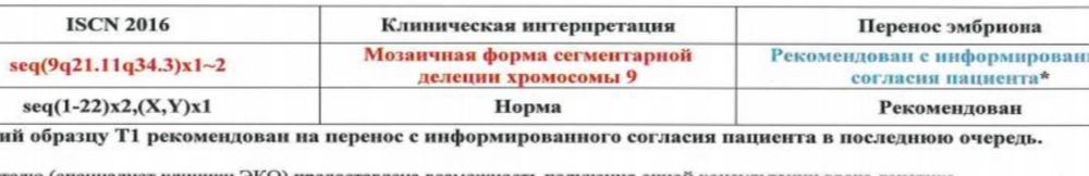 Наталья Ян, да особо не за что, просто слегка прояснила результат. Видимо поэтому написано, что перенос эмбриона только с вашего согласия. Да бы вы осознавали все последствия рождения такого ребенка.