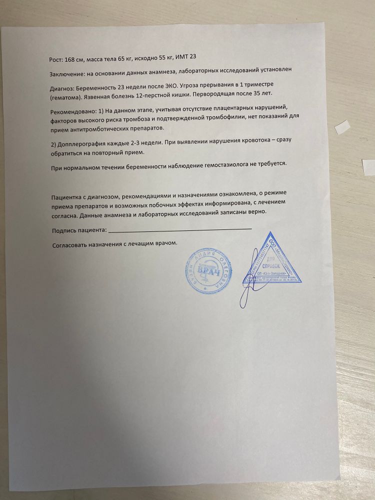 Sash, я даже не знаю, что делать, может ещё к одному схожу, Бузян 2 недели назад прям категорически сказала, что не нужен мне клексан, даже сказала коагулограмму не сдавать, только доплер делать и все.