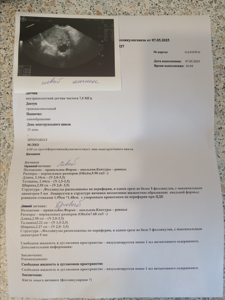 Результаты УЗИПомогите разобраться, узист попался не компетентный от слова совсем. К своей записи не было. ДФ на 8 ДЦ был 15 мм. Она не знает киста это или ДФ размерами 1.99х1.48. Ставит кисту под вопросом. Жидкость есть. ЛГ по анализам ещё не повышался. Не понимаю как расценивать это узи.