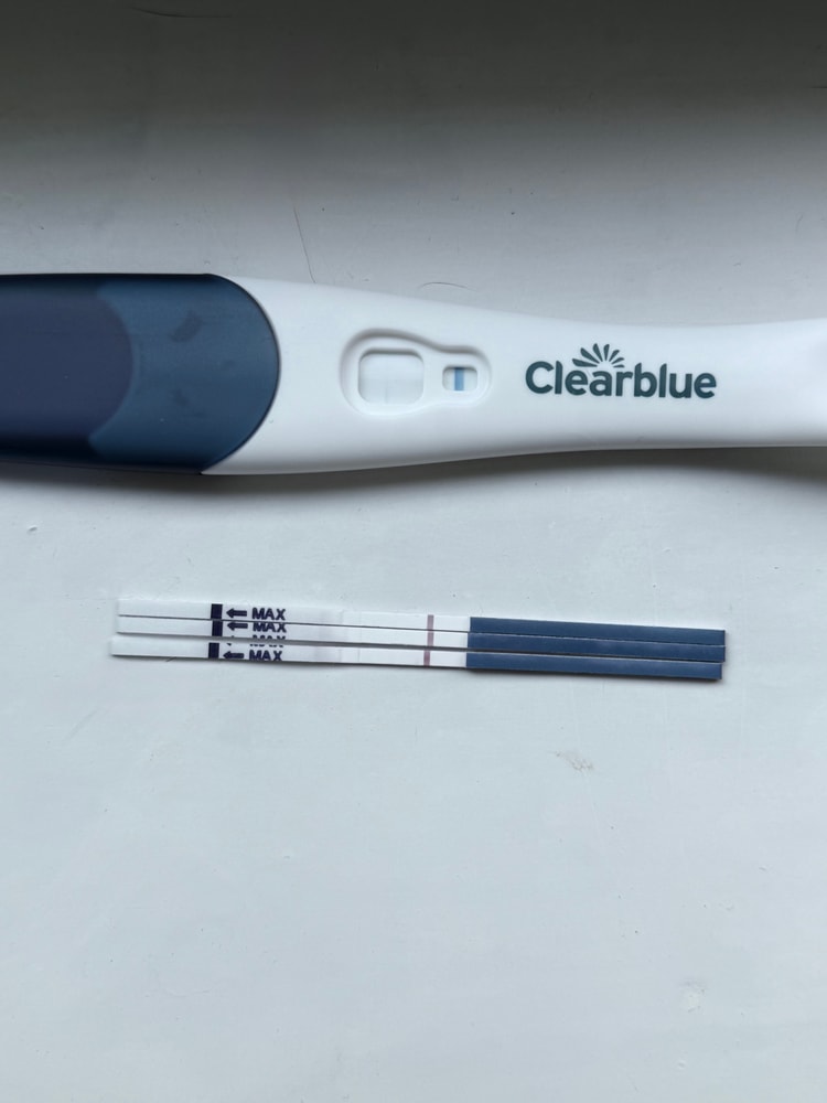 полоска странновата , у меня за 4 дня до месячных вот так показывала