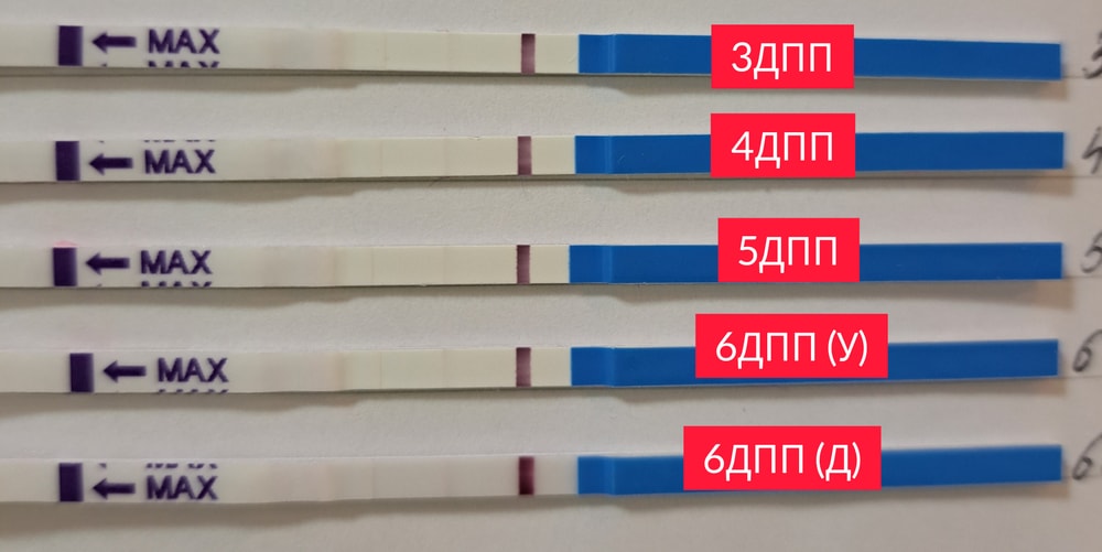 Начну с того, что дважды до этого я отслеживала выход укола. В первый раз мне попались очень чувствительные тесты, на которых вплоть до 12 ДПУ была видна полоска, но хгч пришёл отрицательный. Во второй раз тесты были похуже, на 3-4ДПП оставались только тени, и вскоре они, хоть и скачкообразно, но начали ярчать. На 5ДПП вечером и 6ДПП утром у меня не было сомнений, что это была моя полоска, итог - родился сын. Вот тесты с сыном: