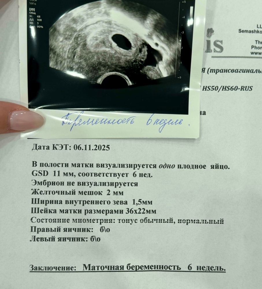 Результаты УЗИДевочки, всем привет! Расскажу немного пред историю. 6 ноября была подсадка эмбриона ( 5 дневка). С 14 дпп сдача хгч , фото динамики ниже. 1 декабря пришла на первое узи, плодное яйцо 7 мм, желточный мешок 2 мм, эмбрион не визуализируется, срок по узи 5 недель. Назначили хгч и повторе узи через неделю. Хгч вырос. Сегодня 8 декабря, пришла на узи , плодное яйцо 11 мм, жм 2 мм, эмбрион не видят. Врач сказала, что подозревает анэбрионию. Вышла и расплакалась от этого. Девочки, на каком сроке у вас был виден эмбрион? И может ли быть такое, что при наличии желточного мешка - нет эмбриона ?
