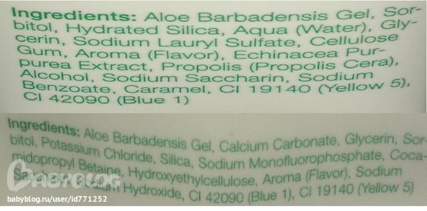 4. Сама я пользуюсь гелем и пастой, которые мне нравятся, и, вроде, они подходят и маленьким. Хотелось бы узнать Ваше мнение по этому поводу. Состав геля и пасты на фото.