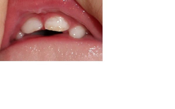 Добрый вечер! Подскажите пожалуйста, сыну 1.3г. Увидела, что левый передний зуб отличается цветом от правого ( какой то желтоватый с белым, как будто вперемешку). Что это? хотя бы примерно (понимаю что без фото и осмотра трудно сказать). Недавно ударялся об кровать этой стороной, сильно шла кровь из губы.