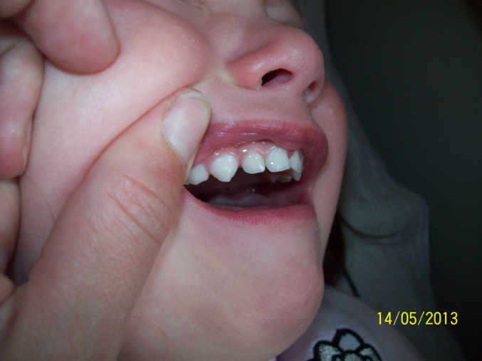 Здравствуйте Алина Владимировна! Подскажите, пожалуйста, у моего ребенка 1 год 10 мес. вот такие передние зубки.. Некоторое время назад стала замечать изменение эмали между центральным и боковым резцами сверху, сейчас уже явно видно, что это не налет. Посмотрите, пожалуйста, что можно посоветовать в нашем случае пока ситуация не ухудшилась. Это кариес у нас? Если да, то каким способом его лечить? И еще меня беспокоит верхний клык, там какое то углубление, но он был такой с самого начала, то есть такой прорезался. И эти язвочки на языке, что это? Педиатр говорит, что стоматит, но я очень сомневаюсь, так как они то появляются, то исчезают сами по себе без лечения. Очень важно Ваше мнение!!! Заранее БОЛЬШОЕ спасибо!!!