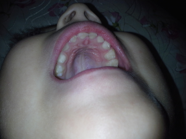 Здравствуйте)Вопросов много к Вам:- есть ли у ребенка постоянные жевательные зубы ( 6ые, они прорезываются без выпадения молочных зубов)?- качаются ли центральные нижние резцы?- получится сделать фото внутренней поверхности зубов с кариесом ( через зеркало, например)?