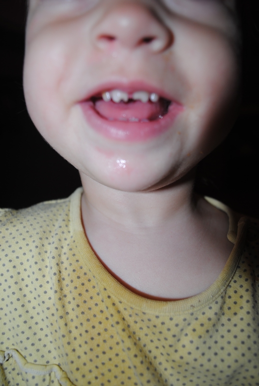 Здравствуйте. Моей дочери год и пять месяцев. Кормила грудью год и месяц. После отлучения даю чай, сок, воду в бутылочке. Пустышку не сосала. 2 месяца назад она начала "подъедать" передние верхние зубки, они сточились уже наполовину. Нижняя челюсть у нее выходит вперед верхней (т.е. прикус как бы не правильный). За верхними зубками темный налет. Подскажите, пожалуйста, что с этим делать.