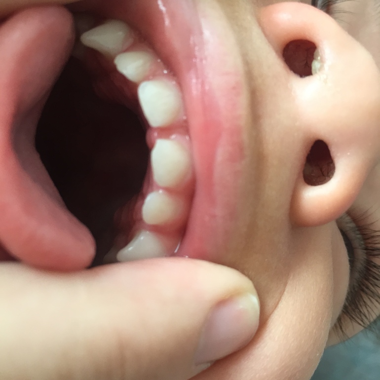 Добрый день, спасибо Вам за Ваши ответы - родителям спокойнее жить :) хотела бы тоже спросить. Ребёнку 1 год 10 месяцев. 16 зубов, последняя четвёрка мучительно лезет уже 5ый месяц. Искусственное вскармливание, не ест ночью с года, сахар ребёнку не даю, воду и узвар пьёт из поильника. Соска еще есть. Заметила, что на передних зубах эмаль стала неоднородного цвета, с более тёмными полосами. Более, чем уверена, что еще 2-3 месяца назад этого не было. Еще при падении сколол кусочек переднего зуба. Посмотрите, пожалуйсьа, есть ли повод волноваться? К стоматологу сходим непременно, как только вернемся в свой город. На фото плохо видно, но эти полосы/пятна концентрируются по центру зуба, вблизи похожи на царапины что ли.