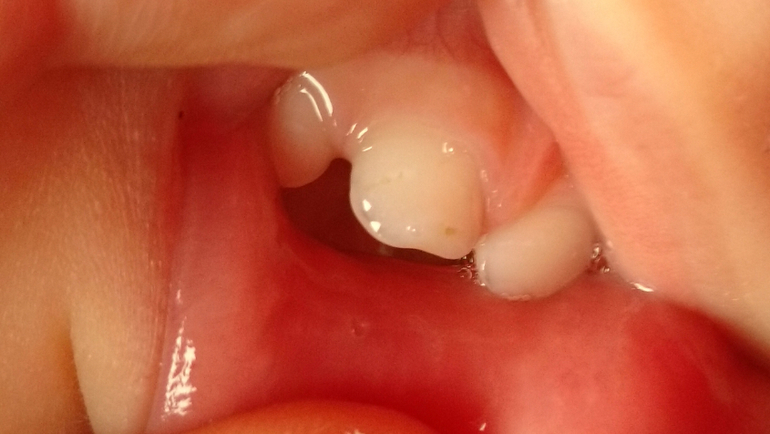 Сыну 1,3. В 10 месяцев в результате падения откололся зубик. Около месяца назад заметила маленькую крапинку на том же зубике.