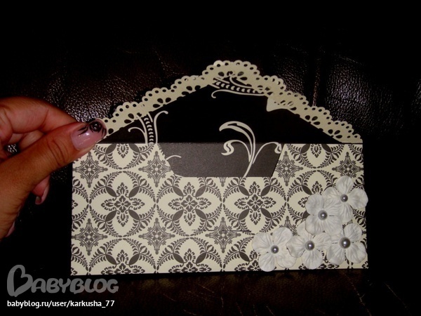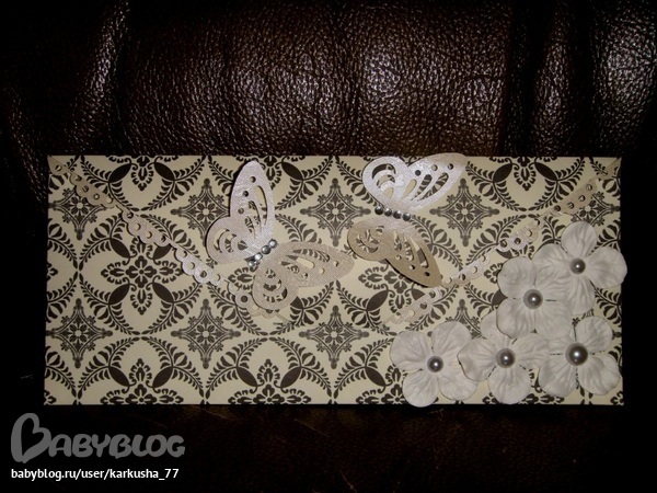Аксессуары, украшения и обручальные кольцаДелала этот конвертик для очень близких людей,вложила душу!Не люблю,когда очень много всего налеплено на открытках,конвертах,альбомах...Бумага,мне кажется,очень выйгрышная!На ваш суд)))