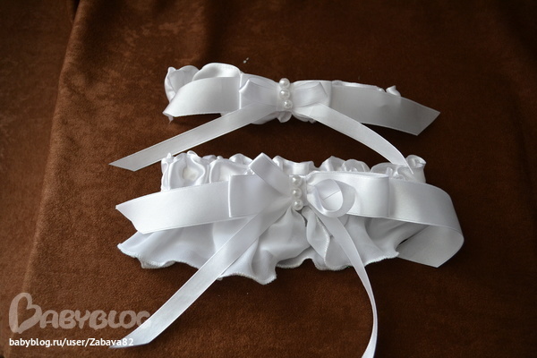 и подвязочки, сделали две, одну кидать, узенькую, другую невеста себе хочет оставить