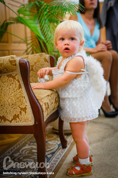 Все время до этого Алиночка вела себя прекрасно, но именно в момент регистрации она почему-то решила вырваться из моих рук и побегать =))))))) Т.к. я ее не отпустила, она заголосила и даже на видеозаписи отчетливо слышно - тётечка читает речь, Алиша голосит =)))))) Правда, когда пришло время говорить "Да!!!", она успокоилась и соблюдала тишину :)))))))