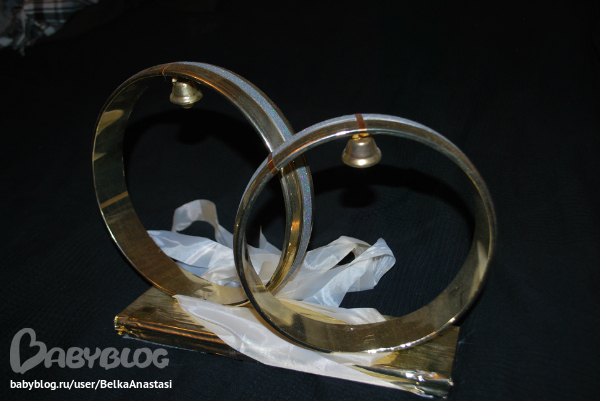 Золотые кольца с переливающейся полосой и колокольчиками.