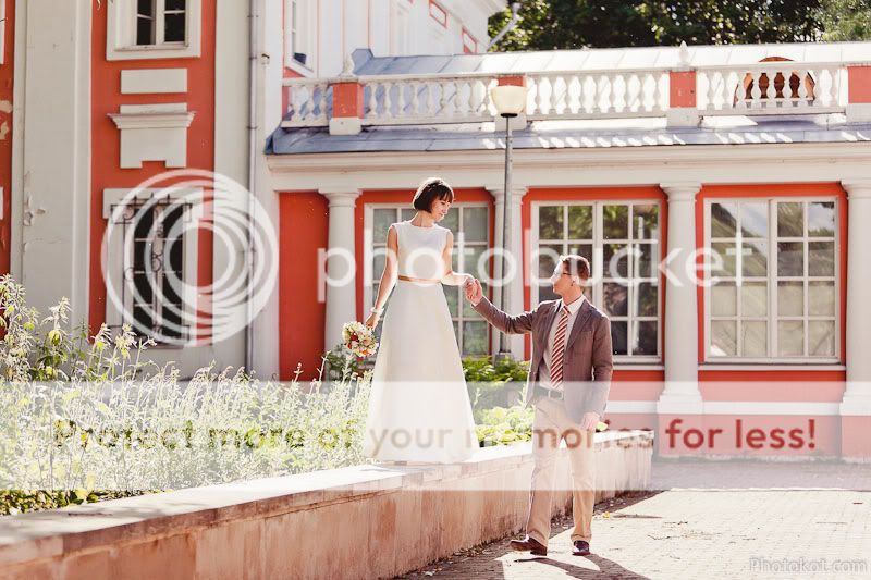 А зачем жениху классический костюм? :) Ведь столько есть разных вариантов! Вот одни из моих молодожёнов. Платье сшито на заказ, довольно классическое, а жениху с серьгой в ухе подобраны некостюмные брюки и пиджак, галстук в цвет свадьбы. Результат мне лично очень понравился.
