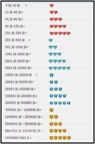Таблица рейтинга продавца. Возрастает от сердечек к золотым коронам.