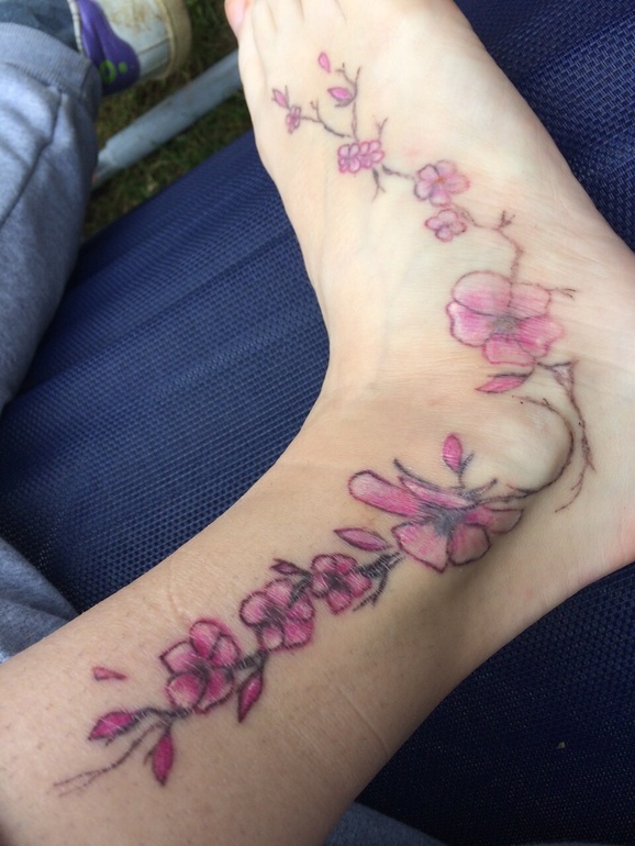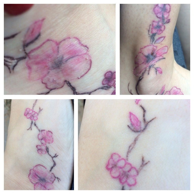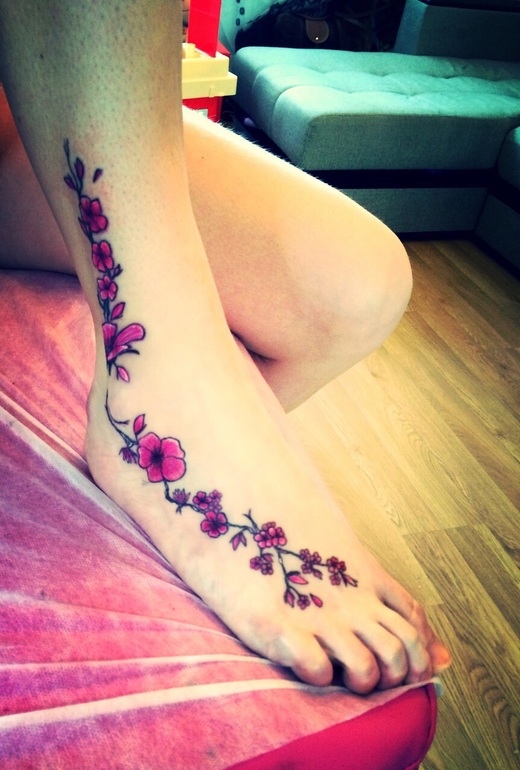 Была у меня на ноге тату из 3-х цветочков..дай думаю увеличим рисунок (спустя 4 года).. Сказано-сделано)))
