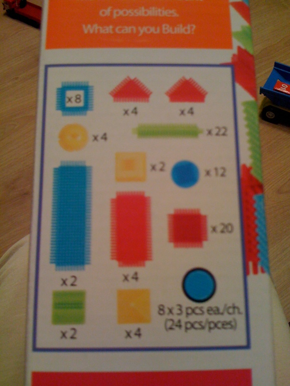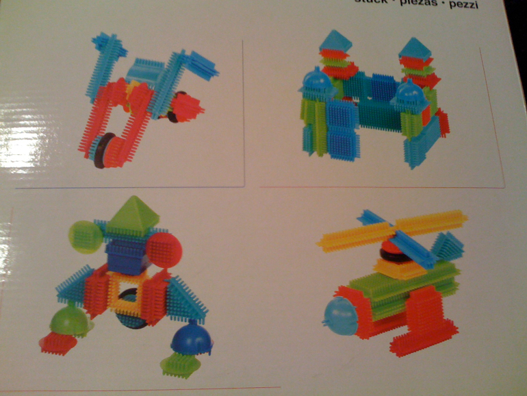 Я его не распаковывала. Не решусь, то ли до нового года отложить, то ли сейчас отдать ребенку? Там есть несколько деталек в окошечке коробки для примера, их я и потрогала. Думала, совсем гибкие детальки, ан нет, все в меру жесткое, так чтобы крепиться друг к другу и не разваливаться. А самое главное... как замечательно он массирует пальчики, я пока три детальки скрепила и то прочувствовала.