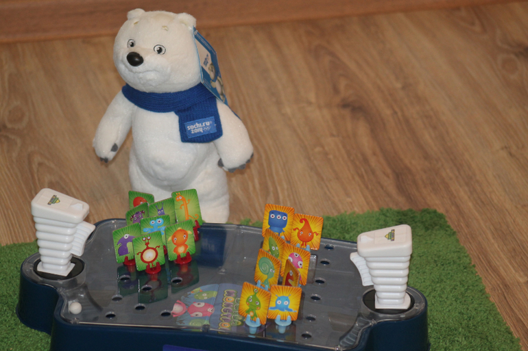Суть игры проста выбить монстриков противника....мне она напомнила мой морской бой из детства. У каждого игрока 8 монстриков мишеней...которые можно установить на любом из 15 возможных мест на своей стороне и вооружившись джостиком выходим на тропу войны ....и тут начинается самое интересное..когда шарик попадает по цели монстрик летит...куда ...да в разные стороны)))))..мы с мужем играли 40 минут...сын игру еще не видел)))))
