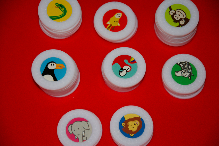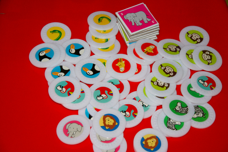 В комплект входят карточки и жетончики. Карточки и жетоны очень красочные и яркие, с забавными мультяшными мордашками животных.