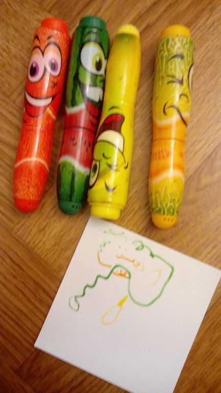 А давайте хвастаться))))))))))Не советую!!они большие и яркие внешне,а наборе по 2 штутки.у нас 2 набора-банан и апельсин и дыня и арбуз.запаха нет никакого вообще и более того они высохшие!!это аромаркеры!!!не пахнут они!отдала за одни 135,за другие 122р.дикая цена за такое г...но!!
