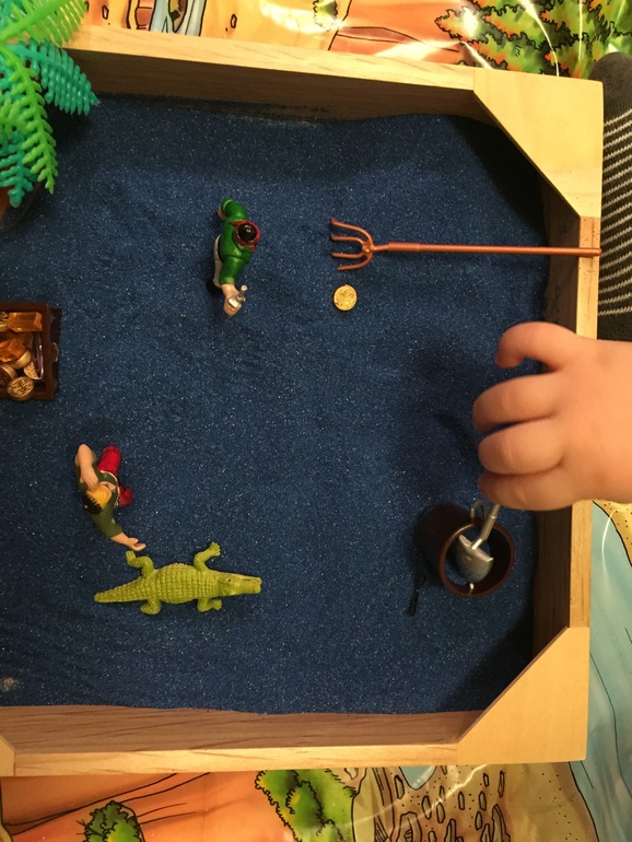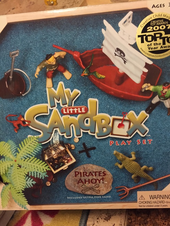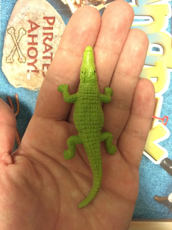 - маленькие игрушки: крокодил, пираты, сундук с сокровищами, попугай, обезьяна, пальма, корабль