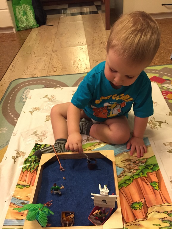 Покупала, когда Митя еще был очень маленький и практически год набор пылился на полке, сейчас ковыряться в песочнице или в другой сенсорной коробочке это любимое занятие сына.