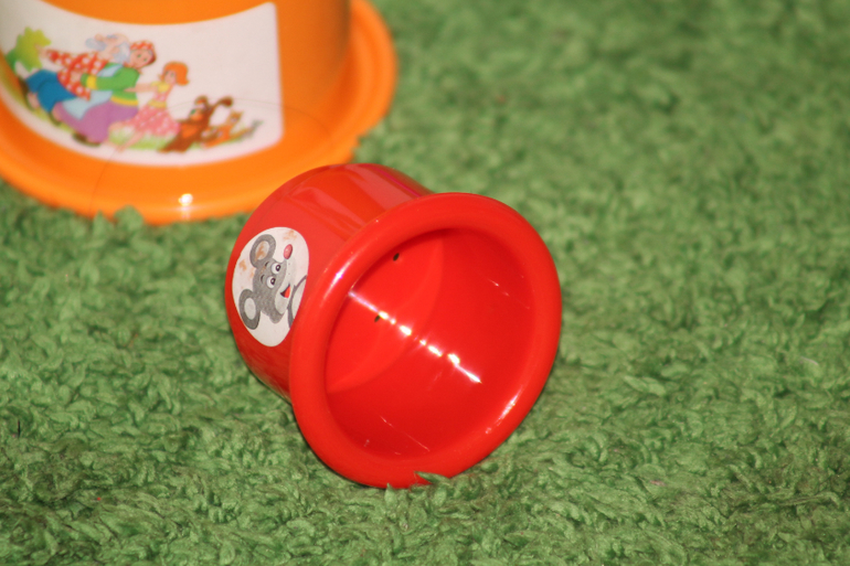 Хорошие пирамидки, у нас обе есть, в Магните брали по 80р. Я еще картинки скотчем залепила, на всякий случай. В дне дырочки, так что подходят и для игр с водой.