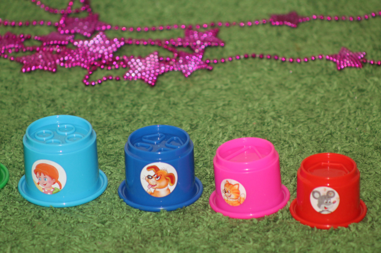 У нас тоже супер-хит эти стаканчики. А в самые маленькие, зелёные, сынуля еще когда дует, то они свистят (за счет наличия дырочек) - это вызывает много восторгов у него )))