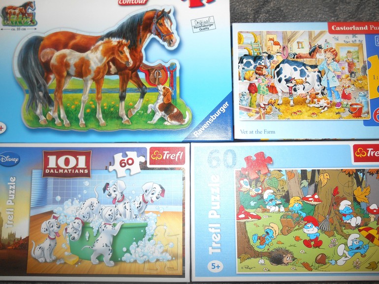 У Касторланд мне нравится цена и качество, изображения также можно подобрать на любой вкус и в завершении Равенсбургер. Очень дорогая на мой взгляд фирма, (стараюсь покупать, только по акциям и распродажам) хотя пазлы у них тоже красивые, хороший картон и качественные, большой ассортимент. Нравятся особенно наборы 3 в 1, разные картинки, и по мере сложности 8, 12, 24 детали или могут быть все 49. Там много разных. И конечно привлекли мое внимание фигурные лошадки и еще у нас есть с динозавром, покажу позже. По качеству претензий нет, только в цене. Если есть вопросы пишите. И вскоре напишу еще пару постов, по мере возможности, сели конечно будет интересно.
