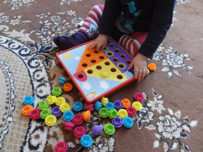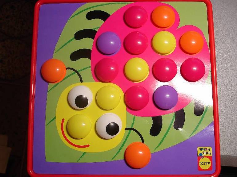 Сами пуговицы хорошо втыкаются и снимаются, очень качественно все сделано, есть лоток пластиковый для храниения пуговиц на который ставится пластиковая решетка с дырочками . Сами пуговки яркие, насыщенные, что можно сказать и про картинки. Кроме цветных пуговок есть два белых гласика.