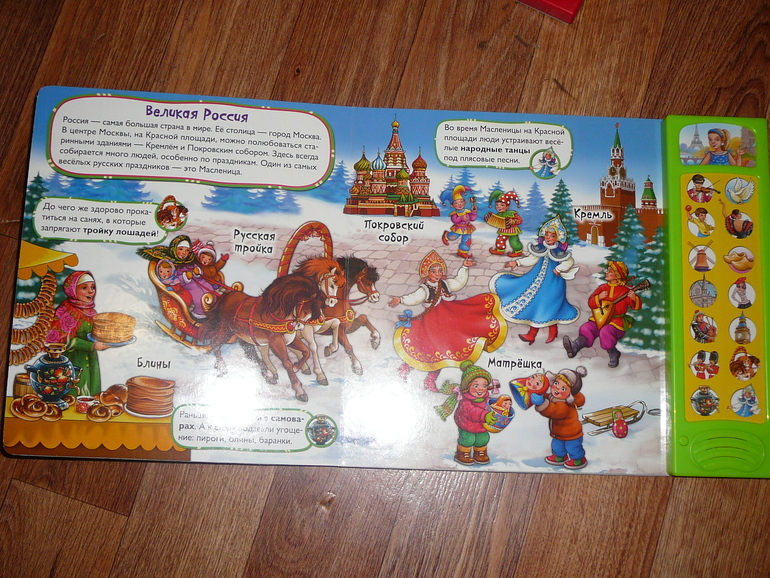 Книга "Европа" из серии "Вокруг света".В книге одна песенка и звуки Европы.Краткое турне по городам Европы Италии,Голландии,Франции,России,Испании,Великобритании. Ну вот и весь обзор.Если будет интересно,то ссылки вставлю.
