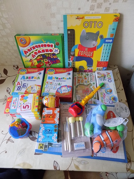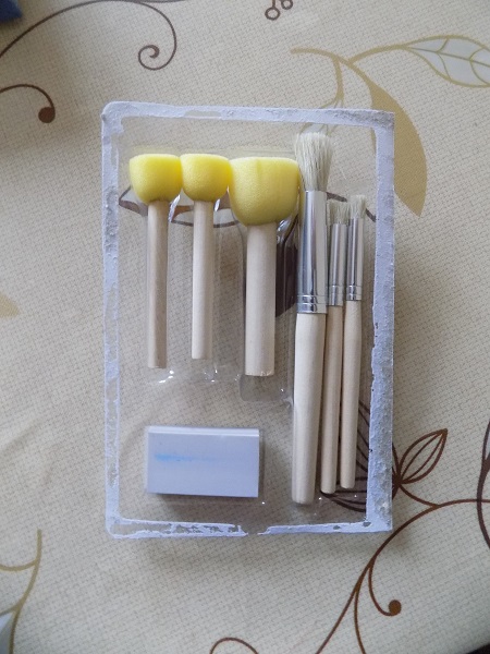 Набор для творчества удивил. Зачем ластик вообще не понятно, раз нет карандаша. Кисти ужасные. Разве что пальчиковые краски размазывать.