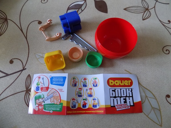 Сборный человек из "киндера". Для адвента да за такую цену вообще отлично будет. Брала на пробу. Нам пришел с пилой. По размеру как Лего дупло, только пластик похуже.