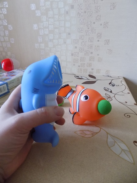 И за ним второй ... )) Мама сошла с ума, носимся с сыном по квартире и обстреливаем собаку. Вот только рыбка не очень удобна в эксплуатации, с акулой лучше.