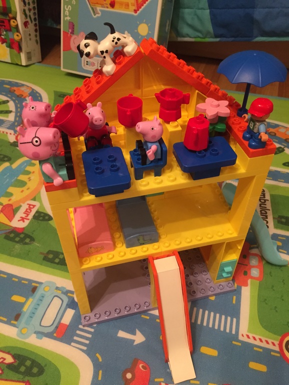 Из лесенки сделали горку)) т.к.горками и качельками дочка сейчас бредит))) чувствую, придется докупать еще конструктор с игровой площадкой Пеппы))
