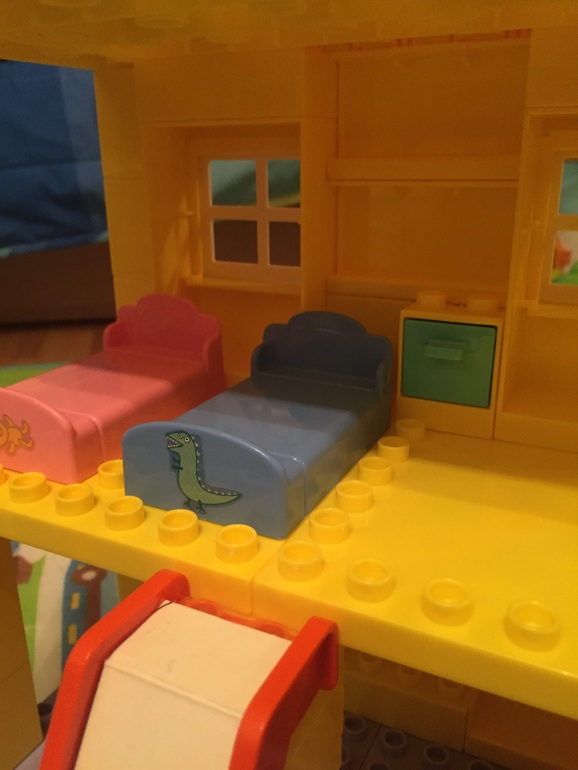 Есть 2 кроватки. Кстати, к домику идут в комплекте еще и наклейки для украшения дома)) но мы пока наклеили только на кроватки: