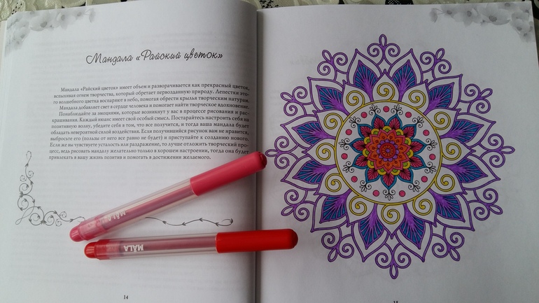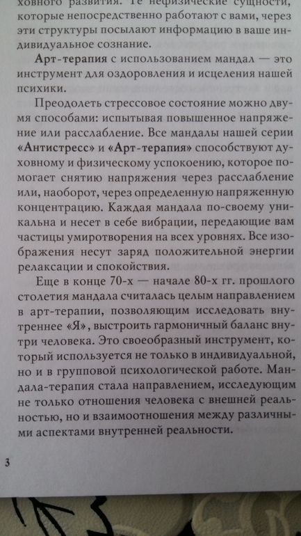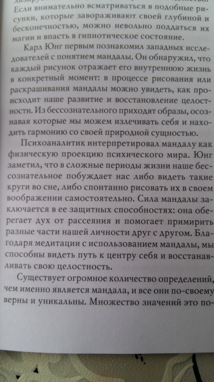 Это не просто разукрашка. Эти магические круги - мандалы помогают справиться с различными проблемами. Чтобы понять, как это работает, вначале книги даны очень подробные пояснения. Вот некоторые выдержки