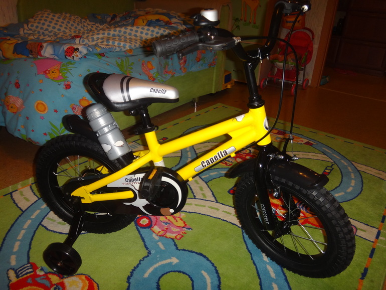 Долго мы выбирали сыну велик ,хотелось чтоб был красивый и легкий ,т.к мы в свои 4,5 весим 13 кг при росте 106 см . Велик стелс сразу выпал из списка -он тяжелый от 12 кг идет . и тут в майшопе я случайно натыкаюсь на капелловские велики . они просто превосходные . есть 2 варианта рамы ,то что у нас в алюминевом исполнении весит 8,5 кг и в в железной раме но весит 12,5 кг .при нашем весе мы взяли все таки алюминий и не прогадали .Сын сразу сел и поехал ))