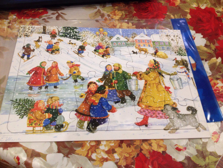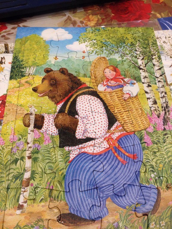 Детали прочные, не такие плотные конечно как у Ларсен, но погнуть так просто не получится. К тому же, они фактурные, что лично мне очень нравится, их приятно держать в руках. В пазлах "На катке" и "Маша и медведь" по 24 элемента, в остальных по 35.