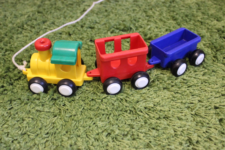 Наш любимец - паровозик. Колесики также прорезинены, незаменимая игрушка для прогулок.