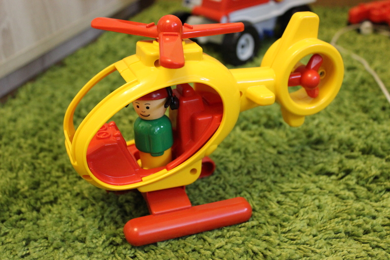 Вертолет. Также хорошего размера игрушка. Пропеллер крутится, человечек в комплекте.